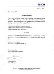 • 愛(ài)普生代理證書(shū)編號(hào):18015