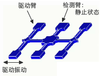驅(qū)動(dòng)臂通過(guò)相對(duì)振動(dòng),互相消除彼此的振動(dòng),所以中央的檢測(cè)臂處于靜止?fàn)顟B(tài)。檢測(cè)臂處于靜止?fàn)顟B(tài),因此可以正確地測(cè)試出處于沒(méi)有旋轉(zhuǎn)運(yùn)動(dòng)的狀態(tài)。
